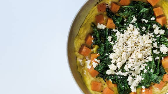 Voir la recette : Omelette aux patates douces, épinards à la muscade et la feta