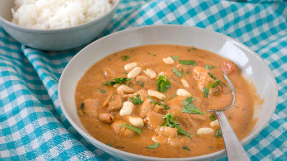 Dans cette délicieuse recette, vous retrouvez des aliments réconfortants comme du lait de coco, du beurre d'arachide, du miel et plus encore. Pour accompagner votre poulet, nous vous suggérons des légumes et du riz blanc.