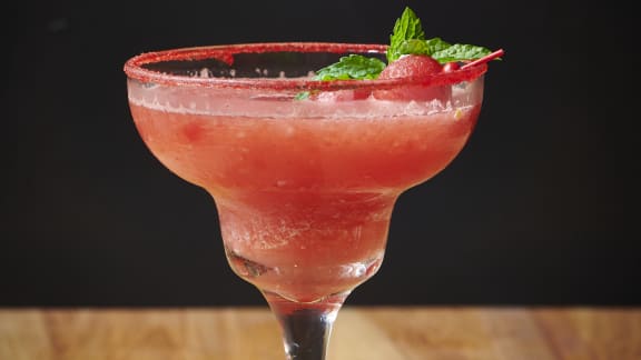 Avis aux amateurs de margaritas : cette recette vous plaira assurément puisqu'elle est parfaite pour l'été et les soirées en terrasse! Pour réaliser cette recette présentée durant Station Potluck, vous aurez besoin de cubes de melon d'eau glacés, de limonade et de jus de lime. Les plus aventureux pourront aussi préparer le tour du verre, pour une présentation impeccable.