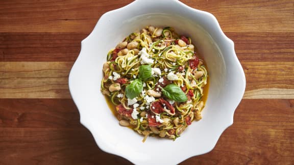 Voir la recette : Nouilles de courgettes aux tomates cerises rôties