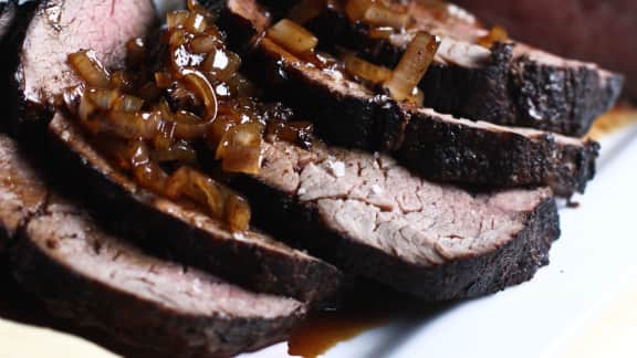 Cuire au four environ 25 min pour une cuisson mi-saignante. Un thermomètre à cuisson inséré au centre de la pièce de viande devrait indiquer 150 °F (65 °C). Lorsque le filet de bœuf est cuit, retirer de la poêle, couvrir de papier d'aluminium et laisser reposer environ 12 min dans une assiette.