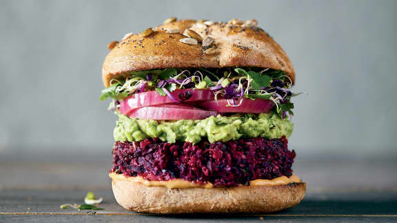 Garnir chaque pain grillé d’une boulette, de guacamole, d’oignons marinés et d’autres garnitures au choix.
