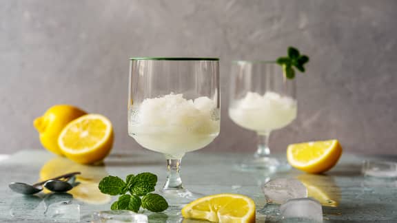 Pour ralentir la fonte du sorbet, placer les verres au congélateur au moins 30 minutes avant de préparer le trou normand.
